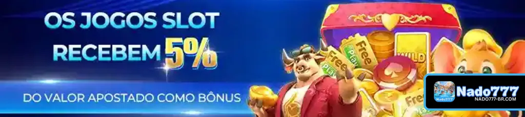 Cada rodada vale mais! Todos os seus jogos de slot recebem 5% do valor apostado como bônus. Jogue, acumule recompensas e aumente suas chances de vitória com NADO777.